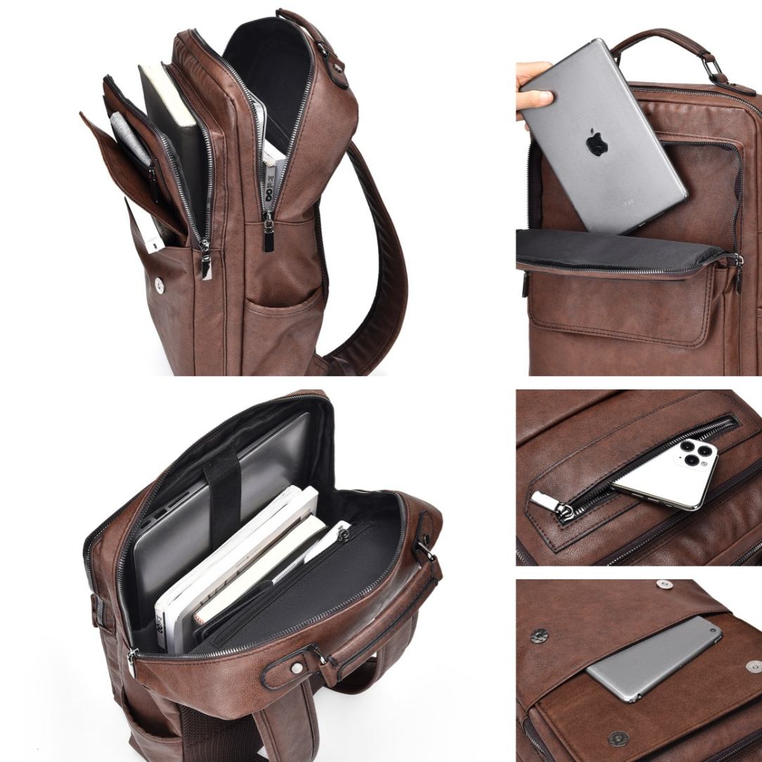 Sa structure compacte, ses multiples poches et sa finition en similicuir texturé en font un choix idéal pour les hommes à la recherche d’un sac à dos discret, élégant et pratique pour le travail, les études ou les déplacements quotidiens.