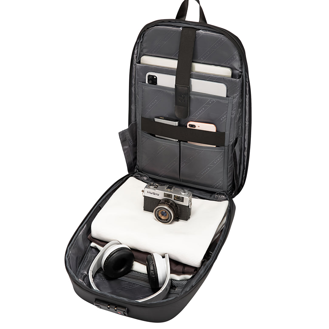 Avec son design futuriste et ergonomique, le SecurePack II ne sacrifie ni la forme ni la fonction. Ses bretelles matelassées et son dos rembourré assurent un confort de port supérieur, tandis que sa silhouette moderne s'adapte à toutes les situations, qu'il s'agisse de déplacements quotidiens ou de voyages.