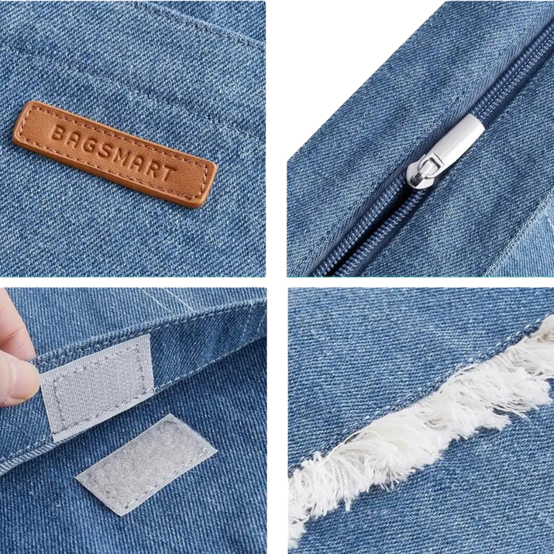 Grâce à son denim épais et solide, ce sac combine confort, résistance et style pour accompagner toutes vos aventures.